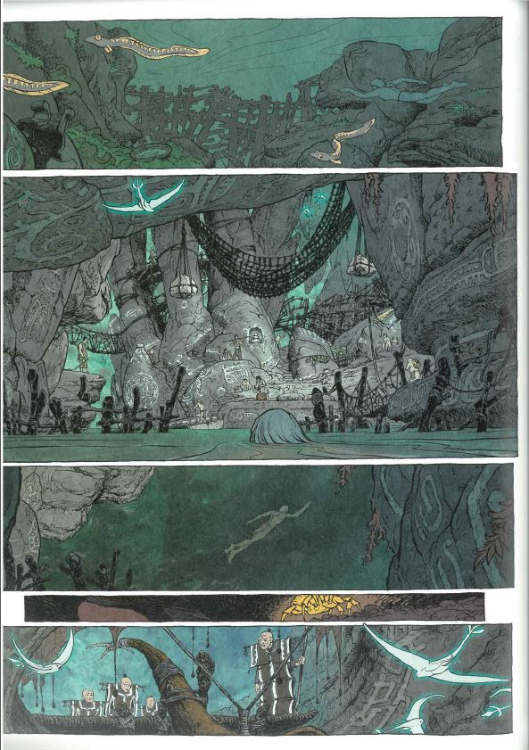 Ce monde est déroutant, mais dessiné à la perfection, qui le rend crédible et ne déstabilisant absolument pas le lecteur ; et chaque personnage est immédiatement reconnaissable. J'avais ressenti la même chose à la lecture du "cycle de Cyan", de Bourgeon, qui avait réussi à créer de toute pièce un monde imaginaire, sans les repères habituels (des animaux aux plantes et habitations), mais pourtant totalement crédible, totalement cohérent, et foisonnant de détails.
