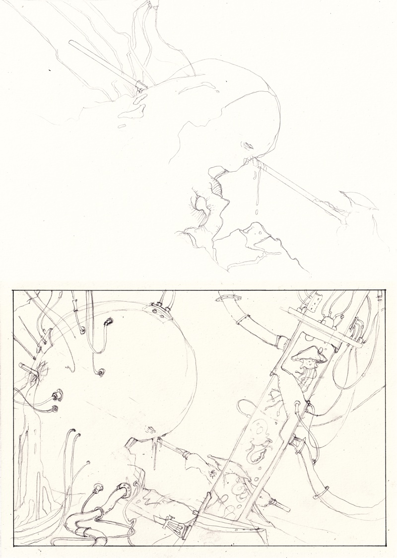 Par contre, ce qui est rigolo c'est l'ordre des choses : Je bidouilles les couleurs péniblement pour tenter de rattraper le bordel, je tire les lignes au cordeau et je vois qu'un des coins est rond. Je me dis "Allez, je vais faire les coins 4, ca sera cool". Puis je me dis tiens, je vais chercher une diapo pour le mettre dedans. Et paf, c'est exactement les même couleurs. Hasard total. Ou alors mon inconscient joue avec deux coups d'avance.