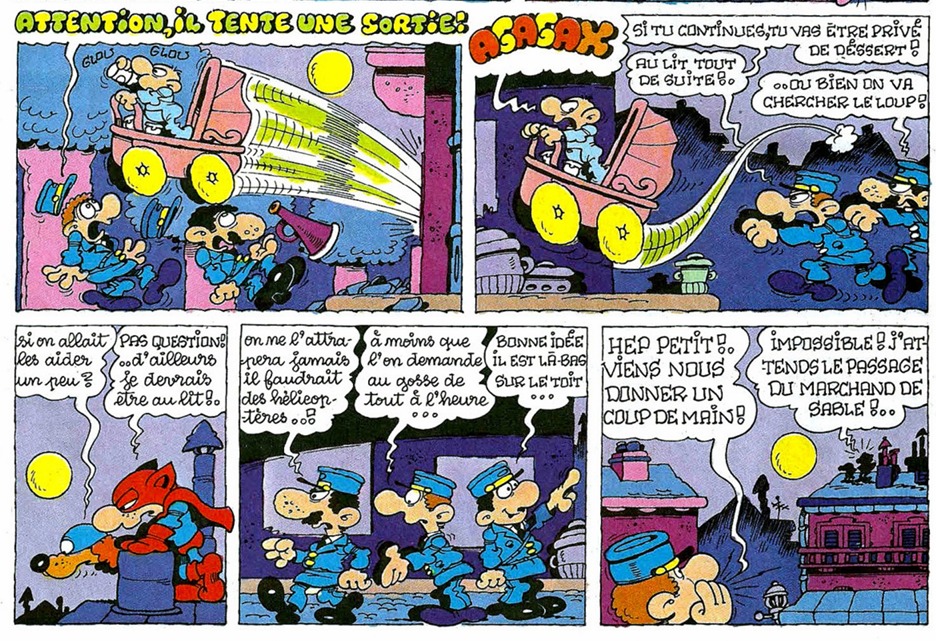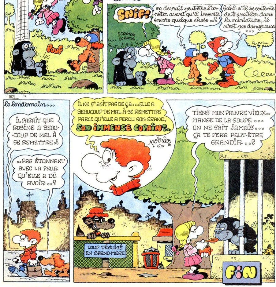 Ces zooms permettent aussi de constater que l'encrage de Terry Austin est bien plus tremblé qu'on ne le soupçonne (l'une des vertus du rétrécissement), et surtout qu'Orzechowsky a gouaché certains arrondis de bulles et certains bords de case. J'en conclus donc que dans son cas, le lettrage arrive donc avant l'encrage (ce qui n'est pas toujours le cas). Mais ça veut sans doute dire aussi que le lettreur trace les bords de case avant l'encreur (reste la possibilité que l'encreur ait gouaché certains bords de case entourant des blocs de texte, mais je pense que ce n'est pas le cas, je pense que c'est une décision prise par Orzechowsky puisque cela concerne son travail).