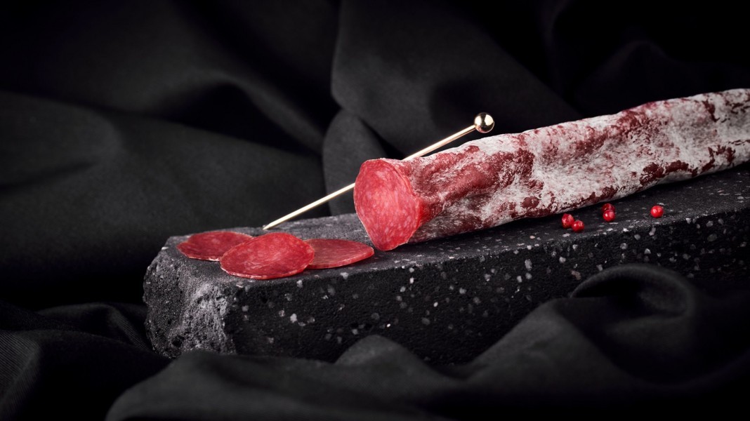 J'ai un copain qui me fournit ce super saucisson, haché au couteau, quasiment maigre, mais agrémenté de gros bouts de gras. Hyper dense, très sec, mais onctueux à la mache. Le tranches sans gras du tout sont un peu hardos.