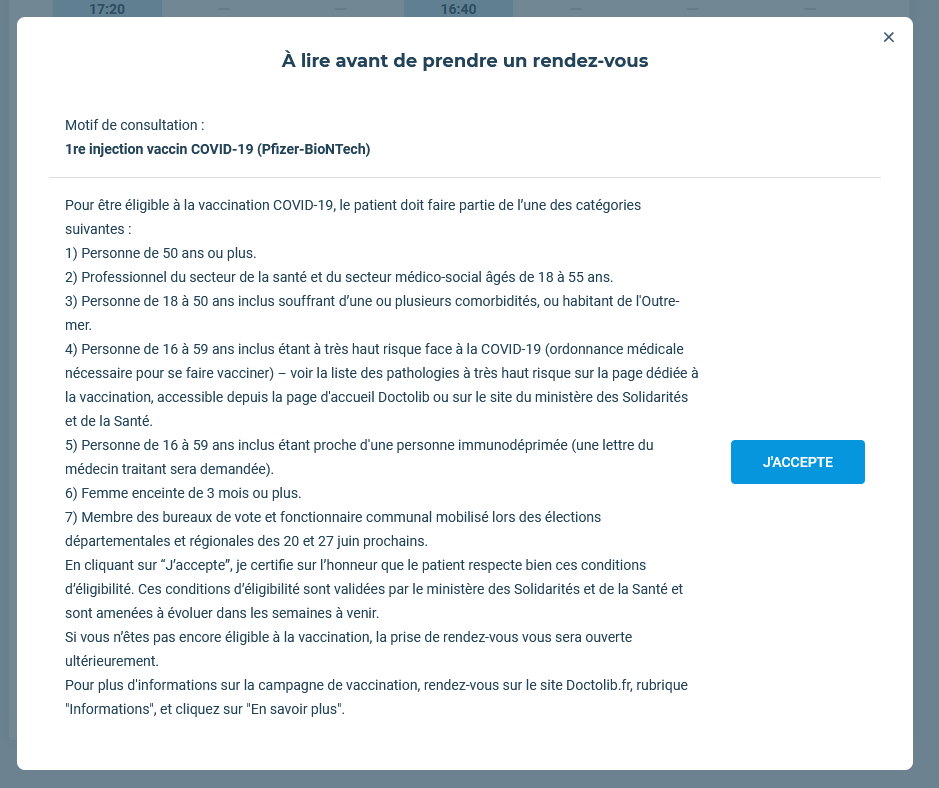 Via "Vite Ma Dose", comme sur Doctolib, on te demande le motif d'éligibilité après avoir choisi tes 2 RDV :