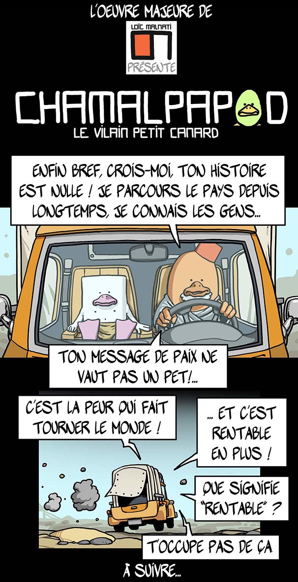 Malnati a écrit:A y est ! L'intro et le chapitre 1 sont en ligne, un chapitre chaque semaine !https://loicmalnati.com/categorie/chamalpapod/