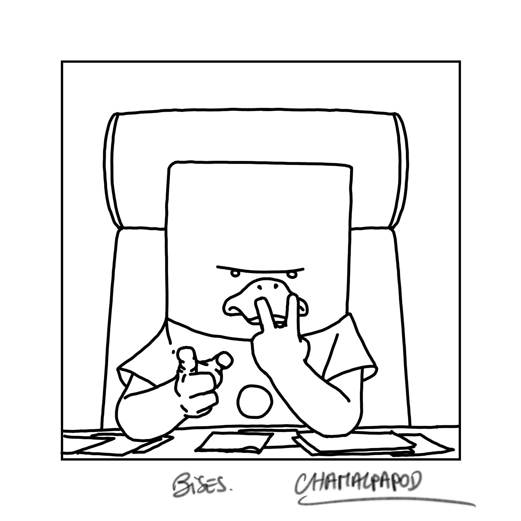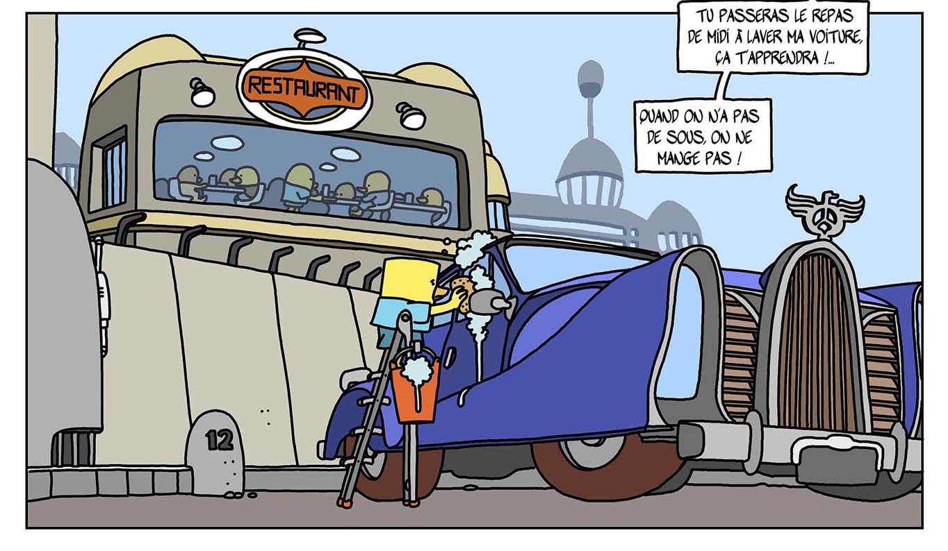 Même les reflets ne me semblent pas nécessaires. L'épaisseur de trait unique, c'est le secret, c'est là que tu mets ton talent au service de l'histoire, à savoir mettre de la profondeur de champ malgré tout. Pas donné à tout le monde. Peut-être, Hergé, Trondheim... mais sont pas de masses.