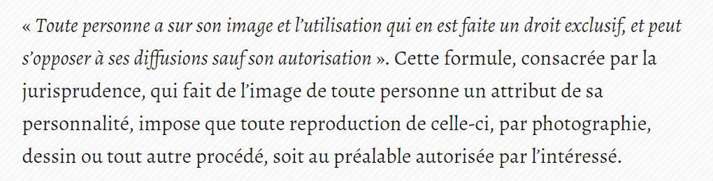 chinetok a écrit:Monsieur Jean a écrit:Il est aussi probable que le contexte dans lequel la personne est présentée compte : si je dessine la commis de la poissonnerie dans son commerce, c'est clairement elle. Si une passante ressemble à la commis, c'est probablement différent. Et si je présente la même personne vendant du poisson pas très frais (même s'il est importé de Lutèce), on pourrait craindre qu'il y ait diffamation.