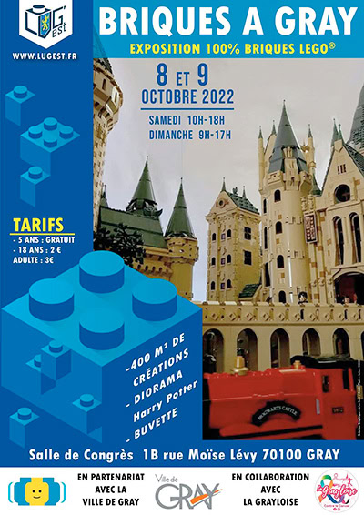 Lug'Est a écrit:Exposition de maquettes et dioramas en LEGO le 8 et 9 octobre à la salle des congrès de Gray.