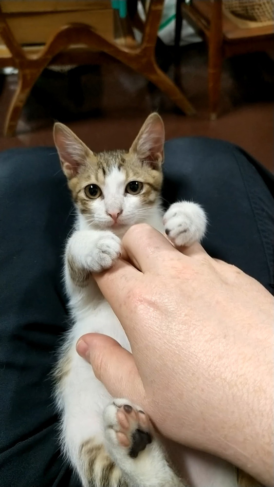 Arrivé chez le véto, il établi l'âge à 5 semaines. A priori n'avait pas mangé depuis 3-4 jours.