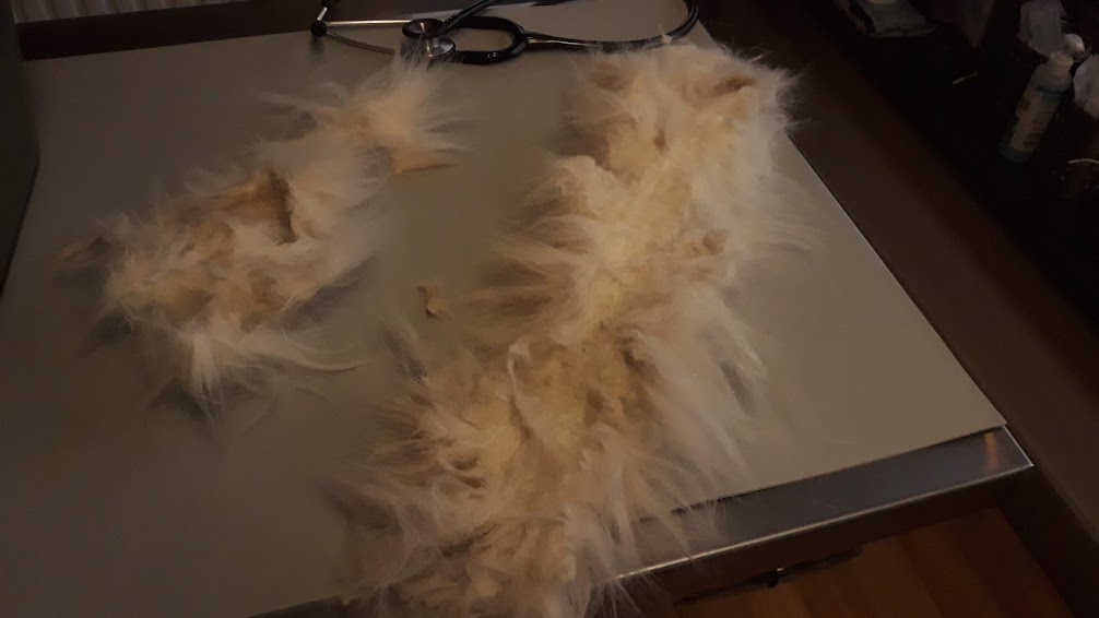 Donc récupération du minou dans un sale état, rempli de puces. Le deuxième y est passé je pense.