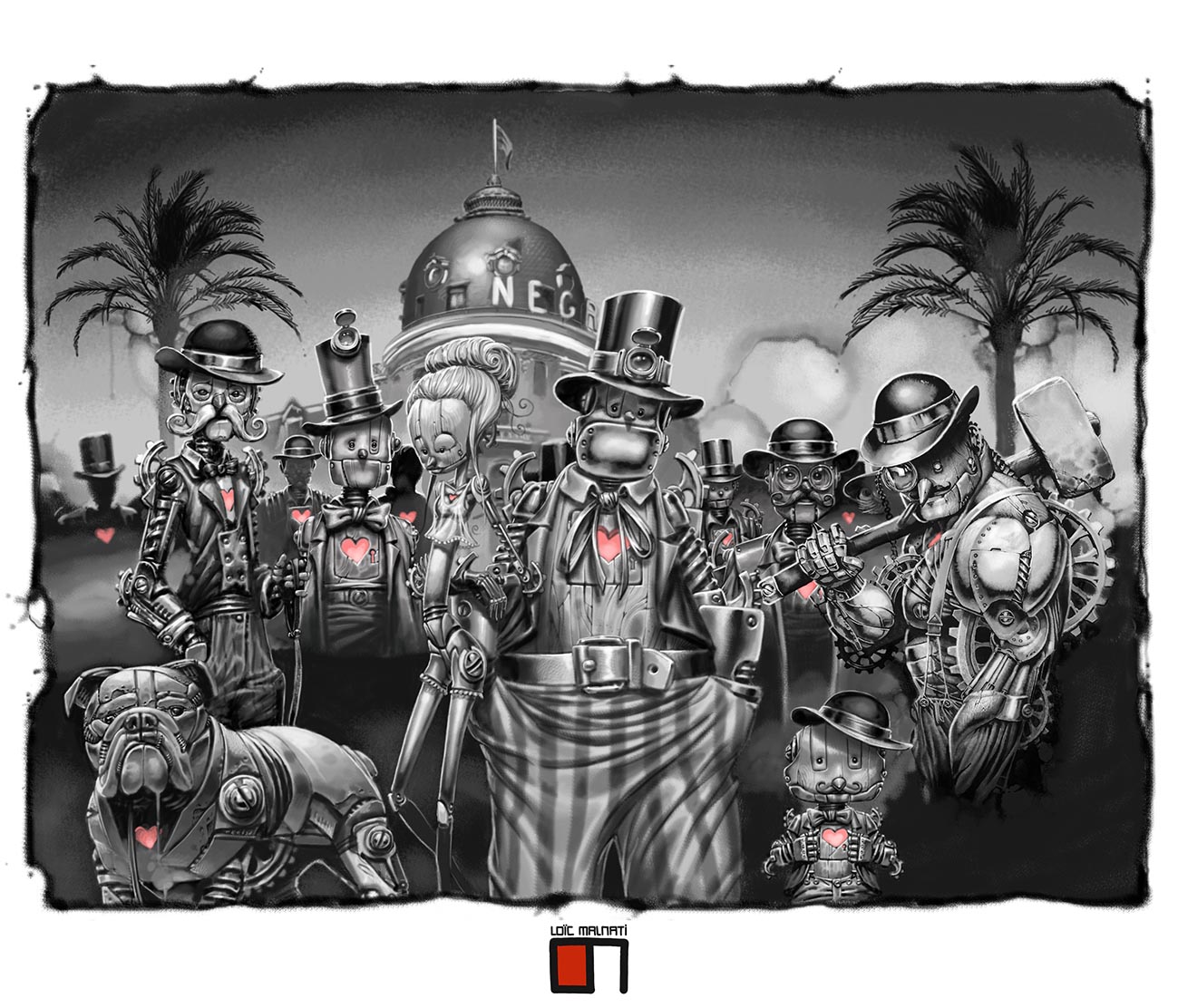 L'univers steampunk est celui de petits pantins mécaniques qui vivent dans un monde en noir et gris. Les seules manifestations de couleurs proviennent de leurs émotions et de ce qui échappe à la rationalité.