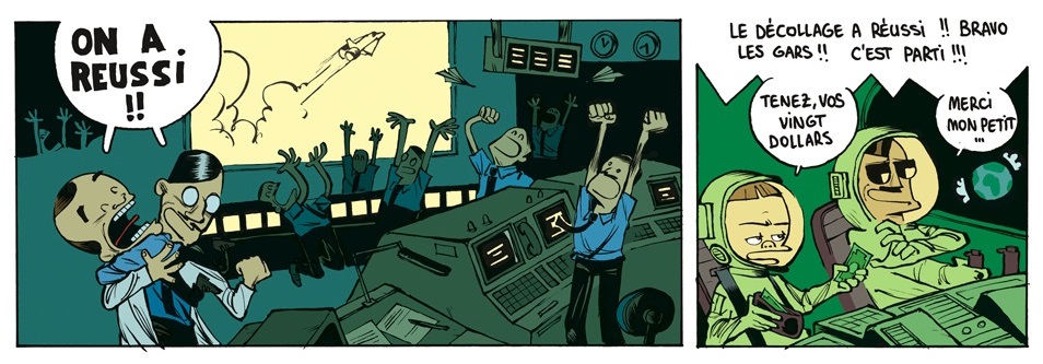 LFDU14 est un album (série de strips humoristiques au format « à l'italienne ») qui mêle gags courts, demi-planches et dessins d'humour totalement décalés, mettant en scène deux astronautes improbables et complètement crétins, dans le délire le plus total !