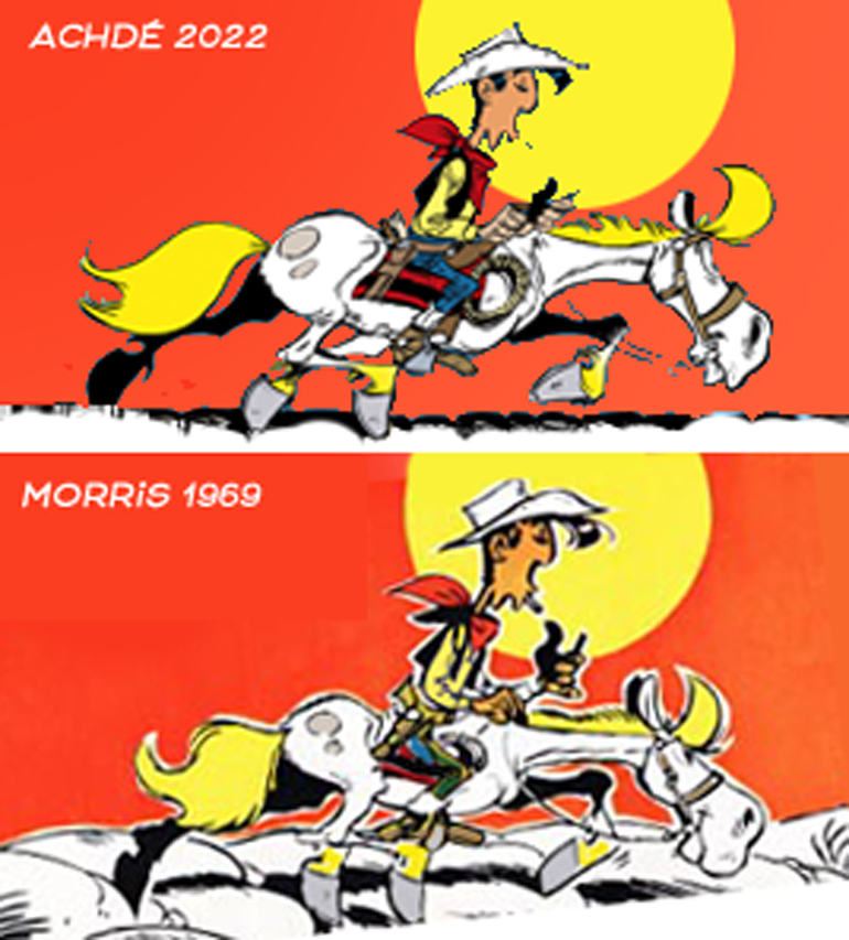 + positions des pattes de Jolly Jumper différente + Achdé fait ses sabots plus petits, plus en adéquation avec la réalité.