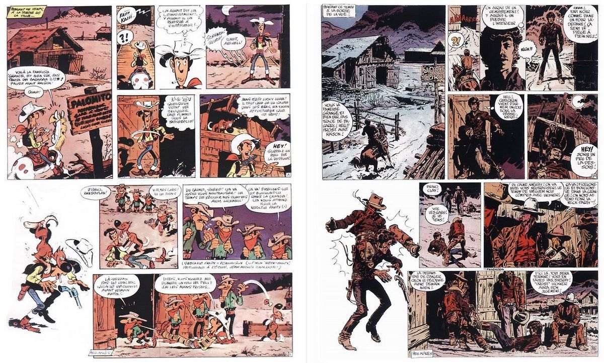 En tant que fan, Achdé et Gerra j'en ai gerbé tellement ce n'était pas lucky luke...Dans chacun de ces nouveaux albums l'histoire de la conquête de l'ouest était inexistante, des caricatures de celine dion et rêne, ainsi que Luc ferry faisait leur apparitions (ridicule, que viennent-il faire là ??! ), et j'ajouterai aussi que Morris avait horreur des jeux de mots et demandait à Goscinny de ne pas en faire justement...Bien évidement Gerra nous en donna (plus mauvais que bon d'ailleur).