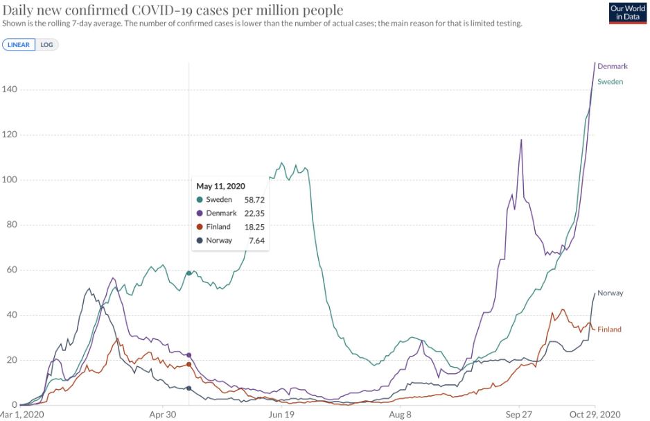 marone222 a écrit:La Suède, après avoir négligé la protection des vieux, a fini par interdire les visites en maisons de retraite et équivalent Ehpad. Ils ont ainsi réussi à stabiliser le nb d'hospitalisation et décès, sans confinement et même sans masques...