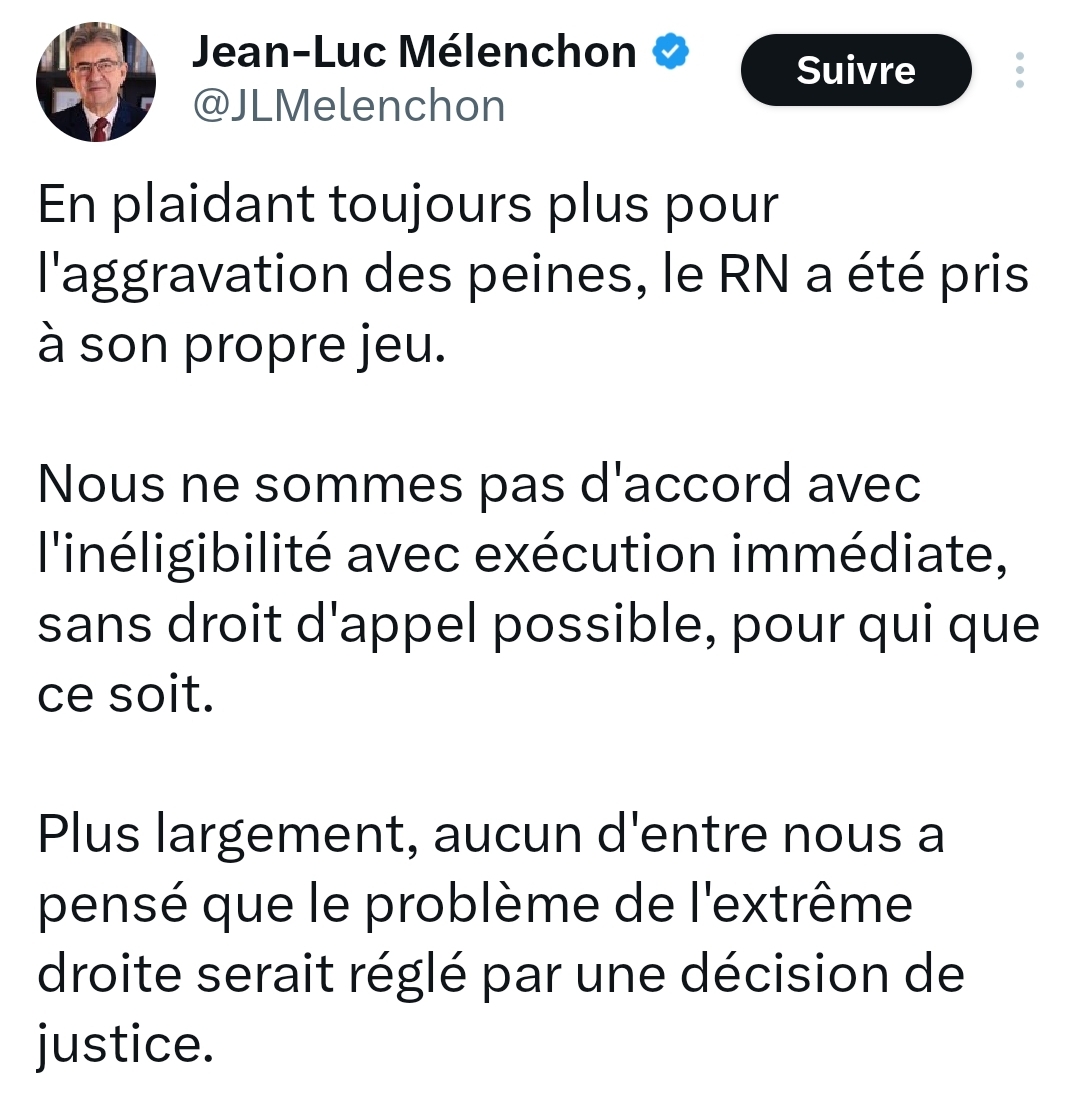 bru a écrit:Je me disais qu'on n'avait pas beaucoup entendu Zemmour sur le procès du RN et l'inégibilité de Marine Le Pen...