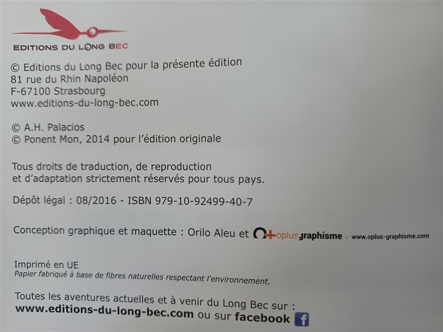 Pouvez-vous examiner le positionnement du logo du Long Bec par rapport au lettrage de Manos KELLY ? Il existe une légère différence de calage selon les éditions.