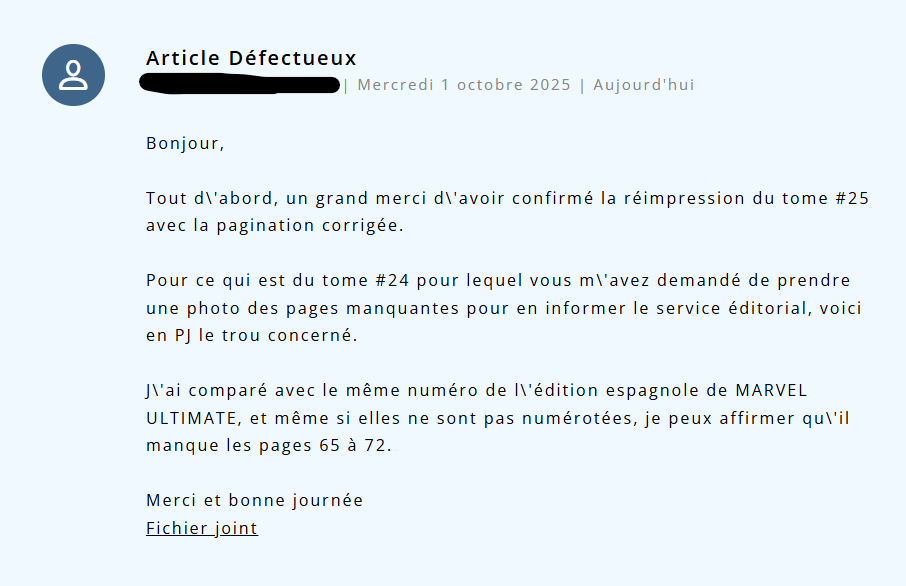 En raison d’un problème de fabrication, le tome 25 de votre collection Marvel