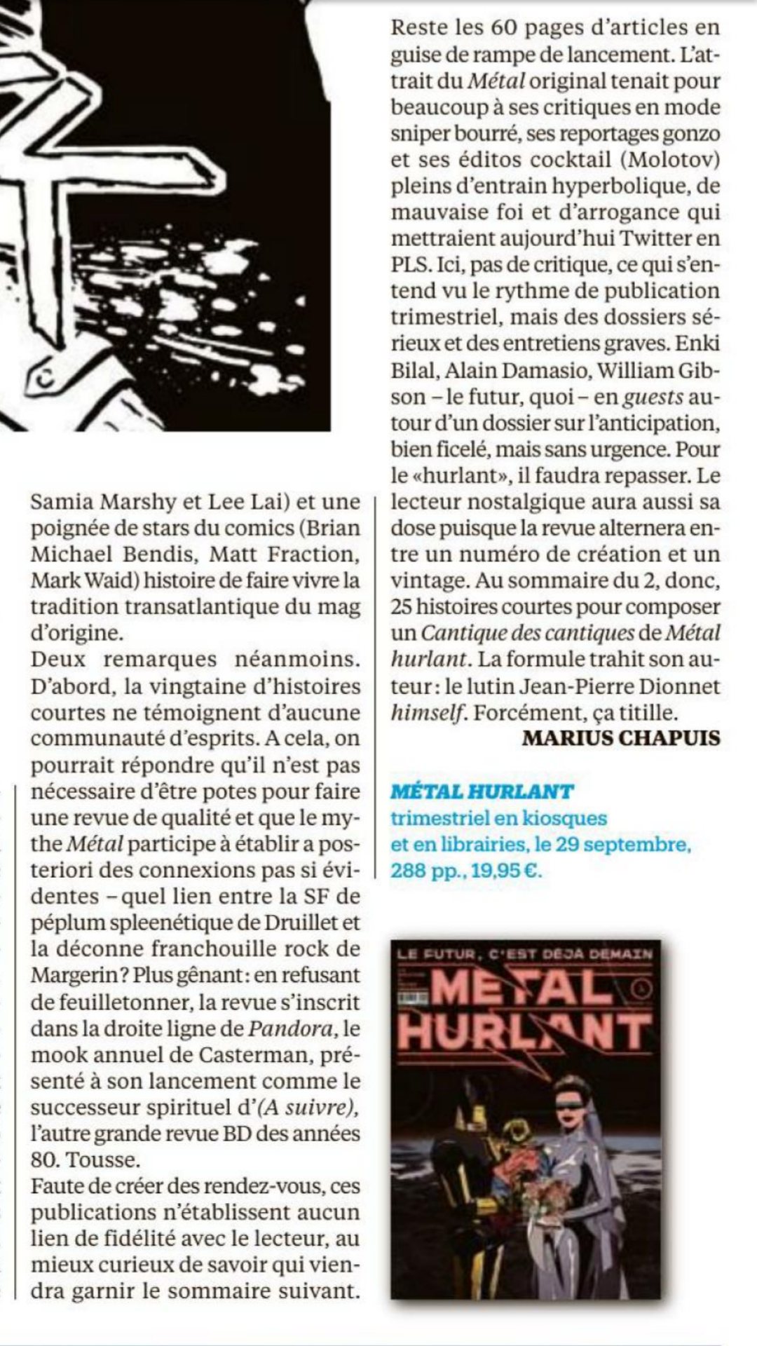 (MH), mais (A SUIVRE) a fait ce qu'ils ont fait, mais en tellement mieux (encore qu'il y a eu des passages à vide chez (AS) - en leur piquant pas mal d'auteurs. Mais sans MH, pas de (AS), c'est sûr.
