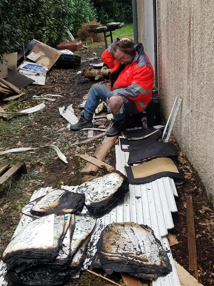 Une cagnotte d'entraide, a été proposée car nous n'avons plus rien. Heureusement qu'un voisin m'a donné quelques vêtements, je n'avais qu'un jeans déchiré imprégné des résidus du drame et une paire de charentaises. Mais mon épouse n'a pas même une robe, ou une autre paire de chaussures que celles qu'elle portait quand elle est arrivée avec ma Deirdre pour frémir devant le spectacle que je leur ai offert, parce que je n'ai pas su enrayer tout cela. Ma fille aussi n'a que quelques vêtements épargnés parce qu'elle est interne à Châteaubriand, à Rennes. Je suis surpris de la générosité dont vous avez fait preuve et de cet élan d'entraide pour notre famille. Je suis surpris également de tous vos messages privés de soutien. Peut-être ai-je dû recevoir des appels téléphoniques, mais n'ayant plus mon fixe...