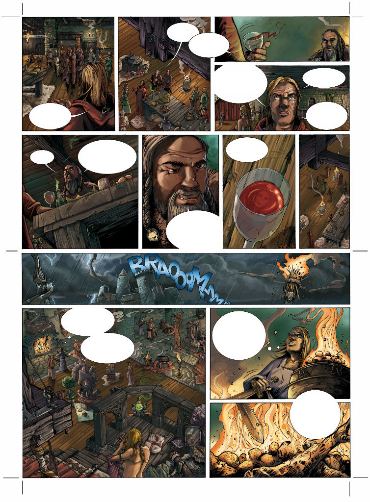 -La couleur, on sent que vous vous faites plaisir, vous en ajoutez un max mais cela nui encore à la compréhension et à la narration. Vos arrières plans doivent être allégés, simplifiés et ne pas être traités comme les avant plans. Et penser à l’harmonie chromatique, là, ça part un peu dans tous les sens.