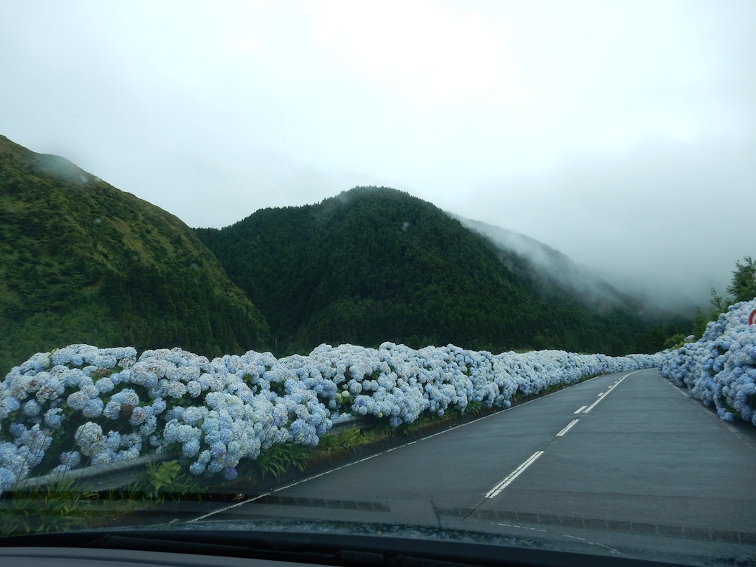 conduite à droite donc c'est pas l'Ecosse ou l'Irlande. le relief parait volcanique, le climat humide et la végétation abondante, donc je tente les Açores.