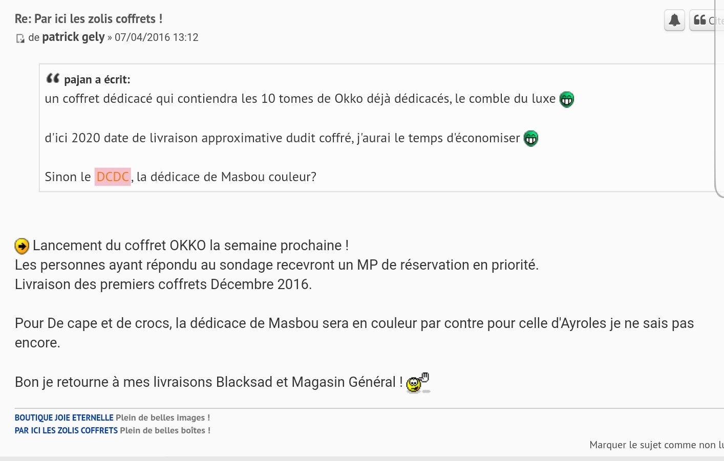jfmal a écrit:Faire cohabiter "clause morale" et "coffrets de Patrick" dans la même phrase c'est très hasardeux je trouve