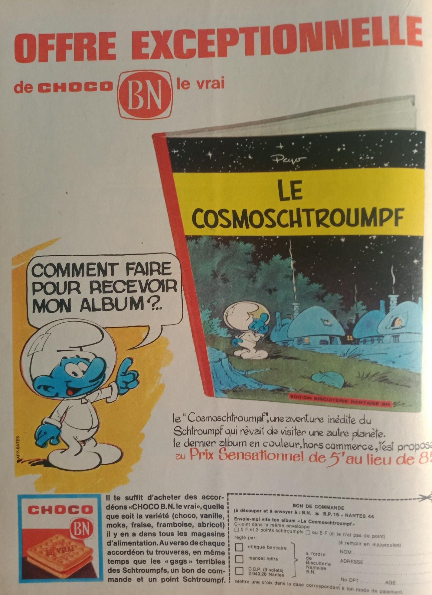 patricelg a écrit:les chanceux qui ont répondu à cette publicité BN en 1967 ont reçu la rare édition originale du Cosmoschtroumpf