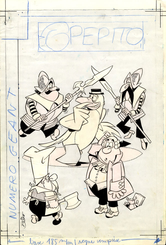 Éditions Cornélius | Facebook a écrit:Pour le plaisir des yeux, voici un petit florilège de dessins originaux de Luciano Bottaro Cartoonist réalisés entre 1952 et 1965 pour composer les couvertures de Pepito !