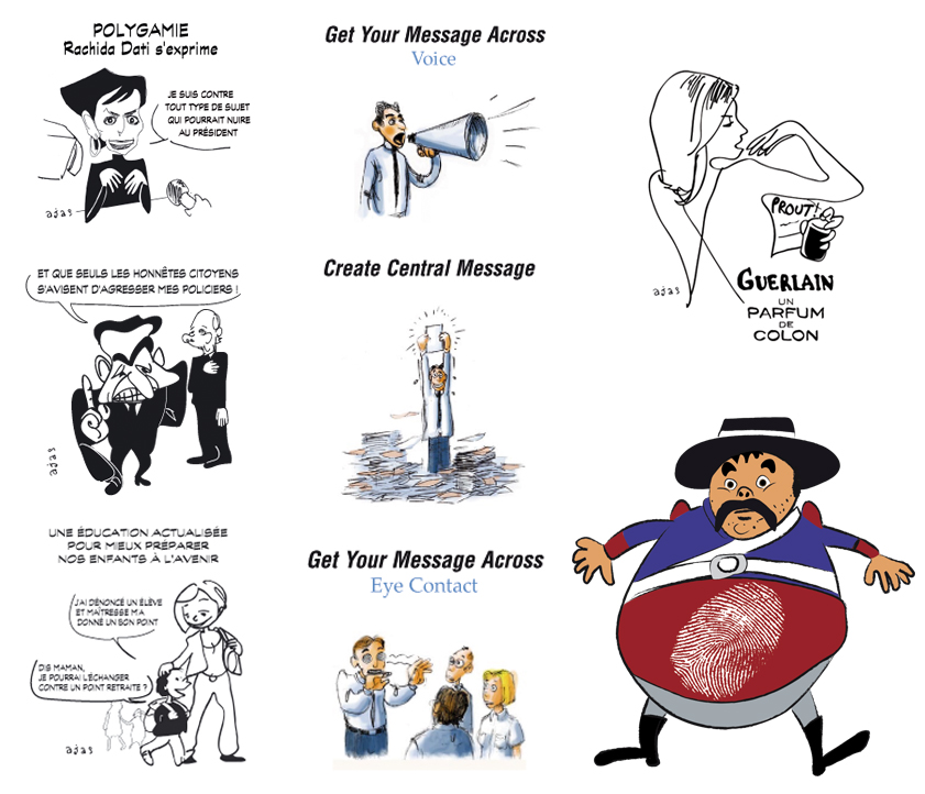 Voici une sélection de quelques dessins pour vous donner une idée de mon style (certes pas tous compréhensibles sortis de leur contexte).