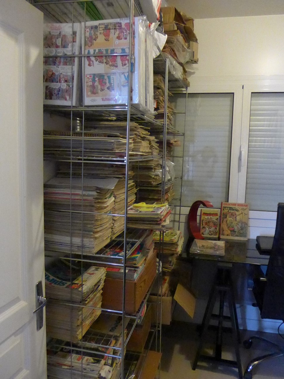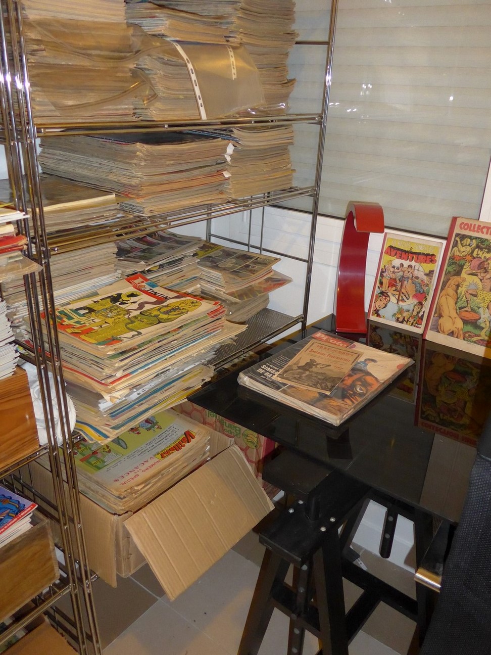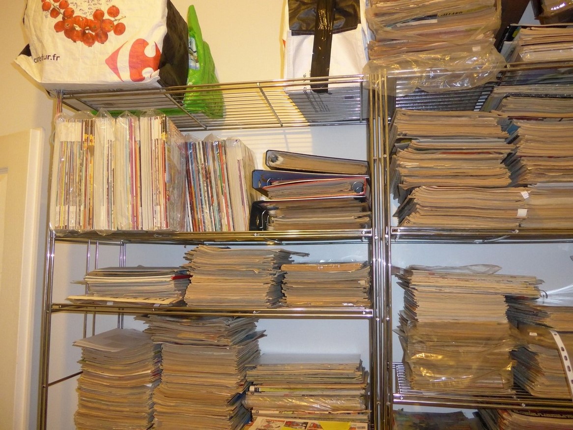 j'en suis a environ 1500 bd et j'estime que j'en ai déjà de trop , alors quand je vois que certains ont des étagères dans chaque recoins de leur habitation, je me dit que je suis un mickey de plage a coté de certains ...mais faut dire que j’achète de moins en moins et que je préfère privilégier la qualité ( dos ronds , lombard , dédicaces ,TT,tirages limités,toilés,...) à du tout venant