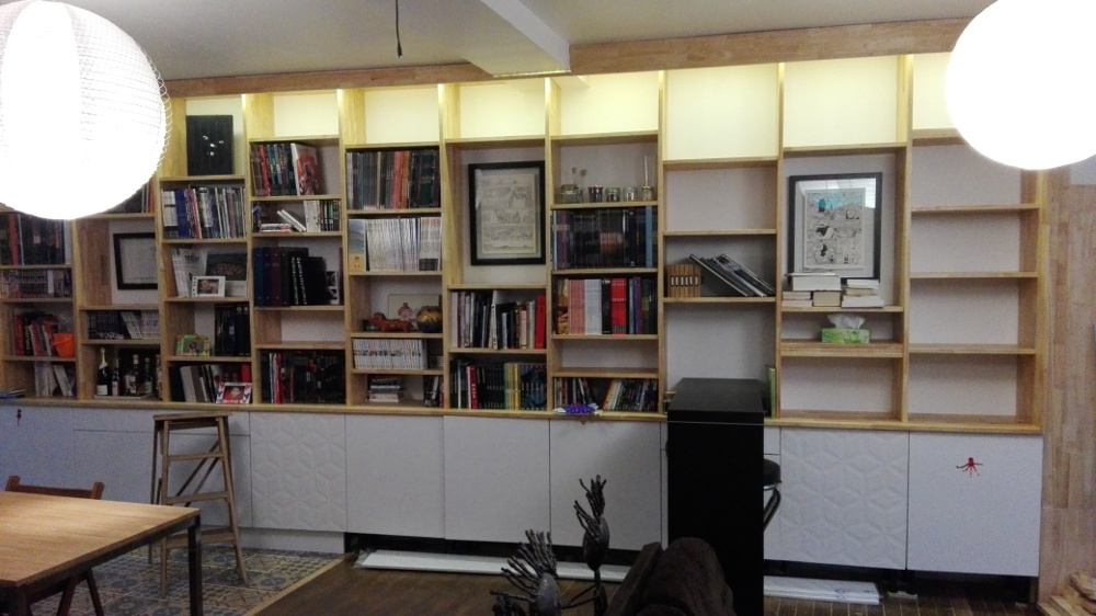 J'aidore les étagères, je trouve que ça en jette, même si c'est pas du sur mesure!