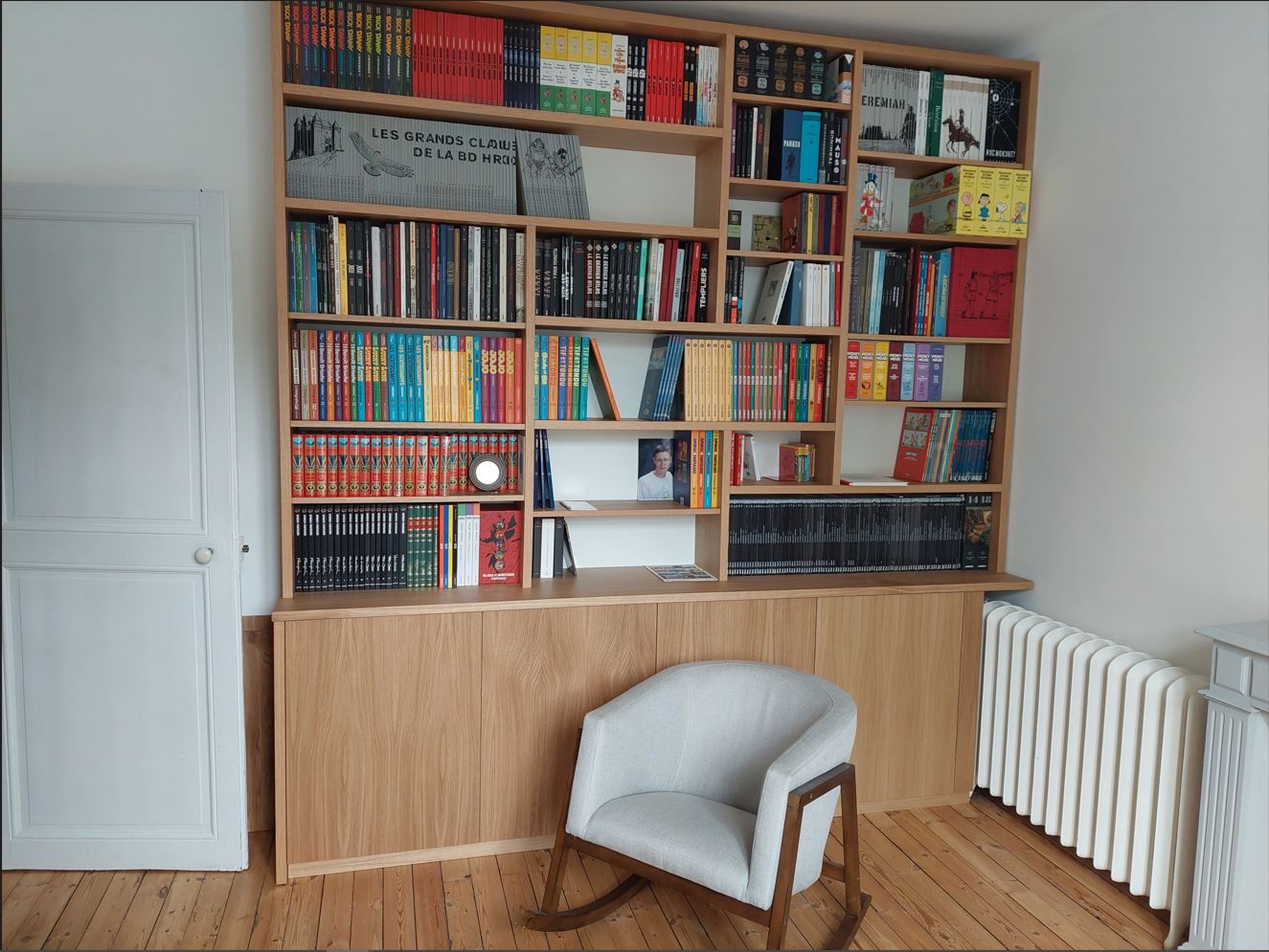 jousse44 a écrit:Bonjour à tous! Cela fait un moment que je regarde vos bibliothèques ce qui m'a donné envie d'en avoir une! Et voilà j'ai enfin pu concrétiser mon projet. J'ai juste attendu 5 ans avant de me décider (il fallait aussi convaincre mon épouse entre temps, mais vu le nombre croissant de caisses de bds qui s'accumulaient, elle a cédé).