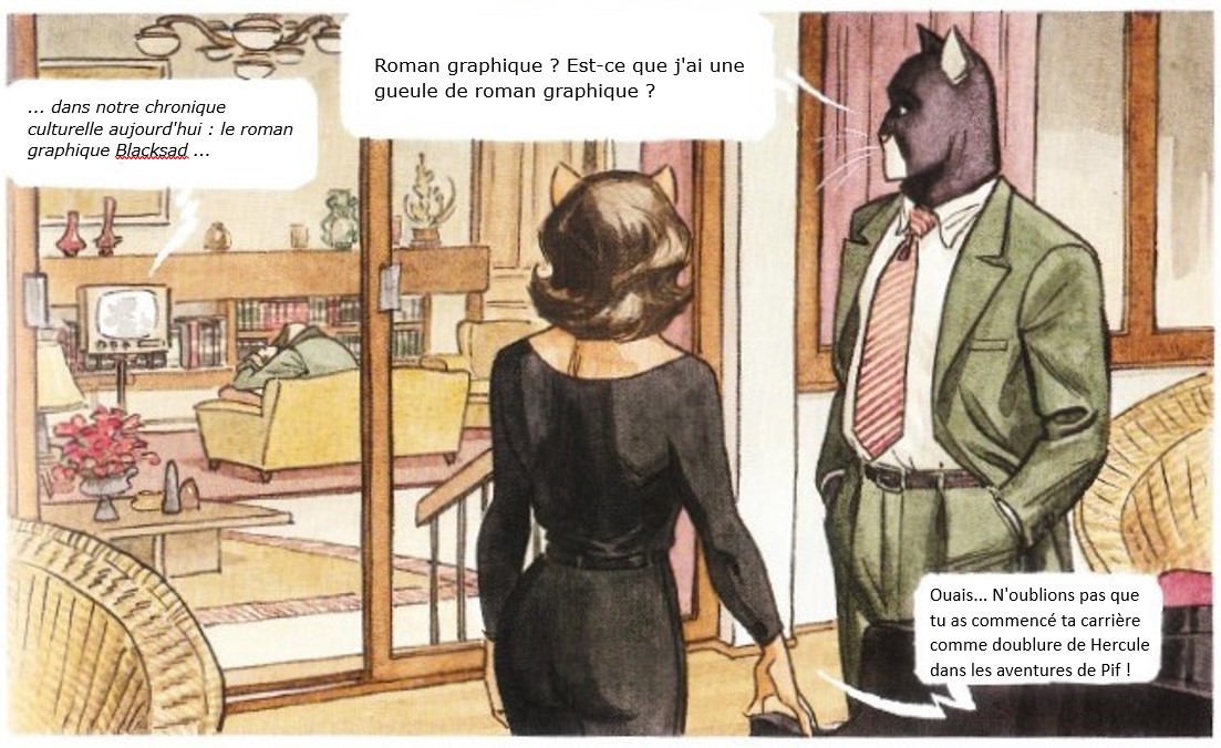 - Où il est, hein, où ? Ce pâle imitateur, cet ersatz de chat noir et blanc cynique et désabusé, que je lui refasse le portait, à ce "triste noir" ?