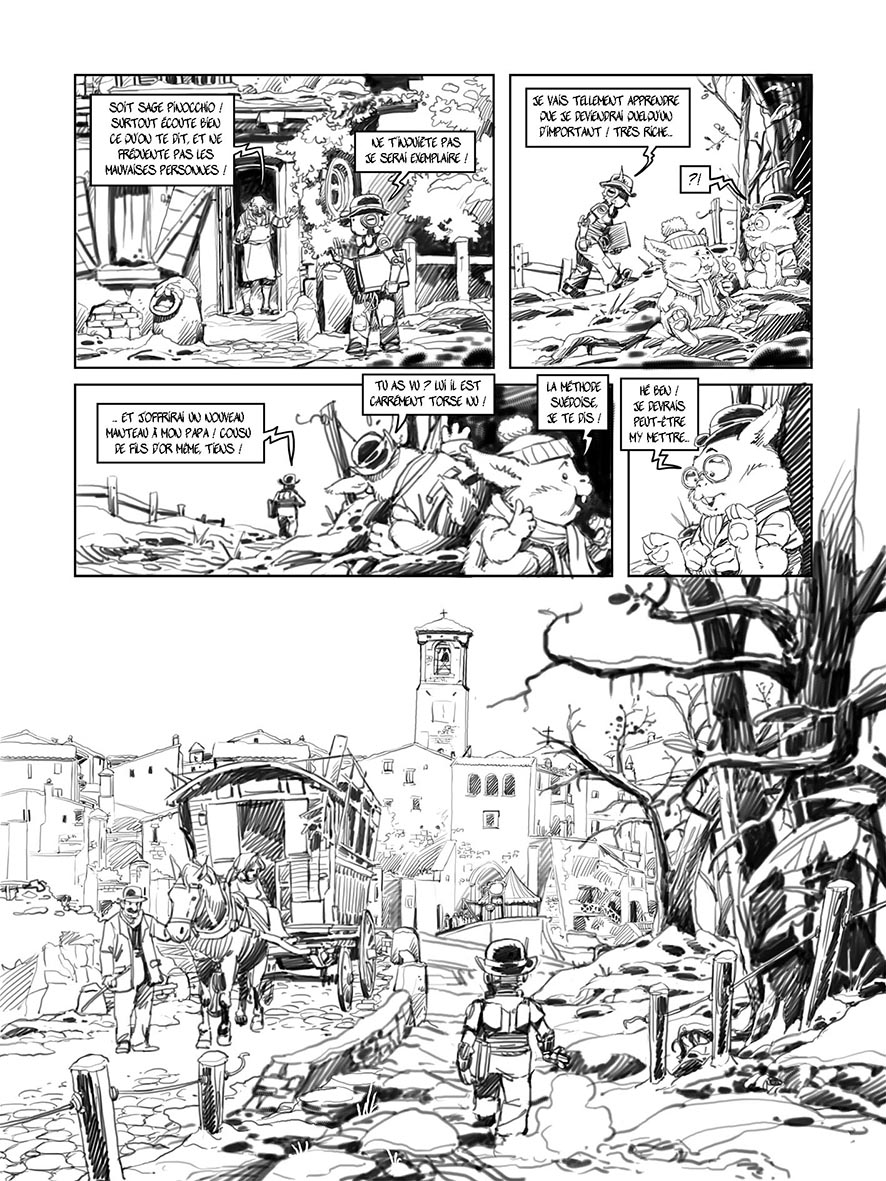 Donc comme je l'ai expliqué, Pinocchio s'est imposé à moi parce que j'ai cherché à mettre en place une méthode de psychanalyse basée sur la remise en question de l'identité comme fondement de l'individu (pour faire simple). Je postule que la personnalité soit un effet de la nature individuelle confrontée aux contraintes du monde. Je postule également que le retour au constat candide de l'état des choses est la "première question", celle du corps. Bref. Dans cette période de réflexion, j'ai discuté avec Jean-Luc Masbou, et nous avons exprimé notre envie réciproque de travailler ensemble, il nous fallait trouver un terrain de rencontre. Et Pinocchio m'a sauté à l'esprit. Je l'ai donc relu. Et j'y ai découvert la confirmation de toute ma réflexion psychanalytique. Voilà pourquoi je me suis lancé là dedans. Ce n'est pas se soumettre à une œuvre populaire, c'est révéler en quoi cette œuvre pourrait bien être la preuve de ma vision du monde.