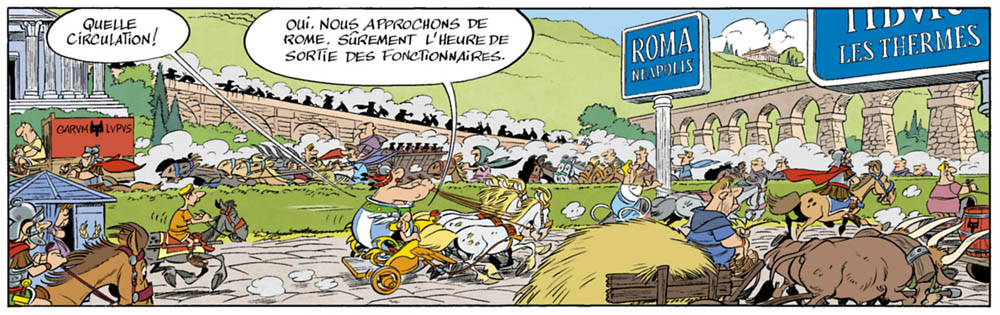 alambix a écrit:Enfin coup de gueule pour l'absence de carte de la gaule et de présentation des personnages en début d'albums ! Oui c'est inutile parce qu'on ne les lit plus, mais quand même, c'était une tradition ! Et commencer l'histoire à gauche, moyen. Tout çà pour placer le plan très peu détaillé de la course en pleine page ... Il suffisait à ce moment-là de commencer à gauche comme d'habitude et d'ajouter une page entière pour terminer sur le banquet en pleine page. Cà n'a jamais été fait et graphiquement, Conrad aurait pû se faire plaisir ! On aurait même pu imaginer tous les concurrents invités à ce banquet !