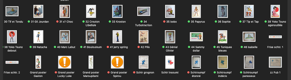 Sauf l'exception de l'affiche Gaston année 70 (Gaston et Jeanne), et du Wanted Dalton, toutes les autres sont sur fond blanc.