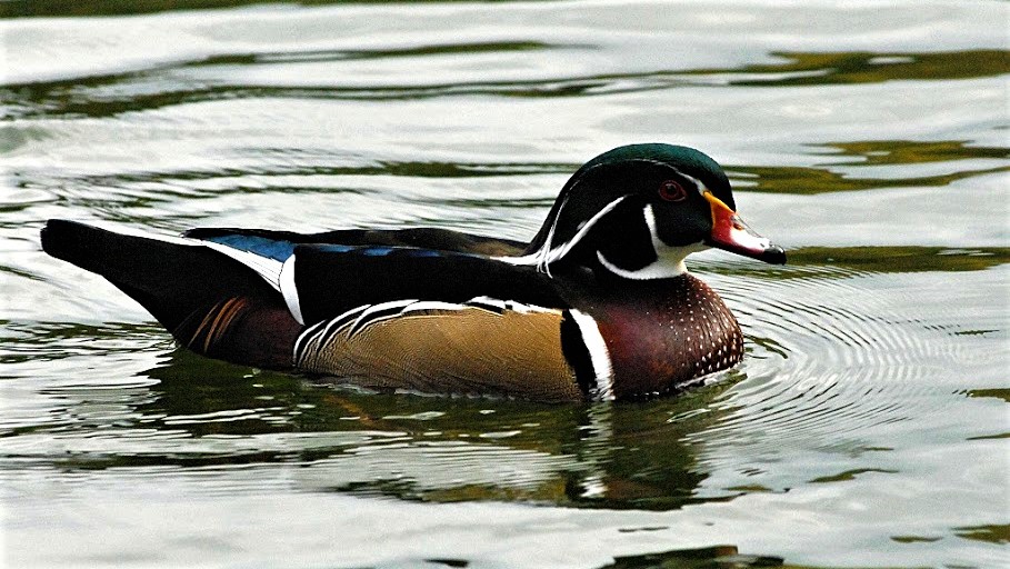 le canard carolin, ou canard branchu, espèce nord-américaine tout aussi magnifique