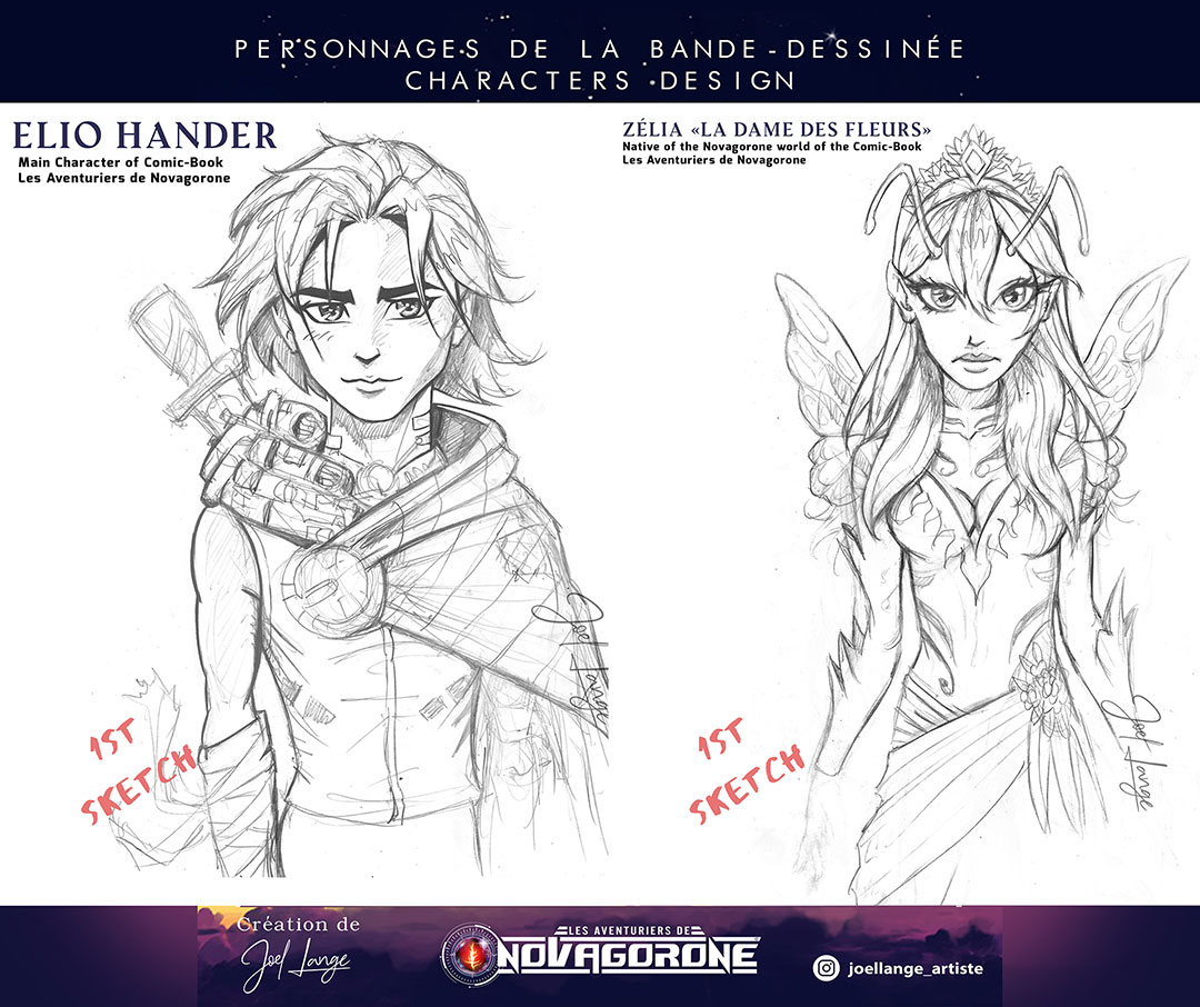 - Avancement du projet : J’ai écrit le Scénario / Dialogues, réalisé le Découpage des 46 Planches et fait le Character Design. Je réalise donc les dessins pour cet album.