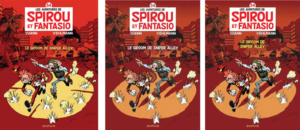 Sur la version 2, même le costume de Spirou a terni.
