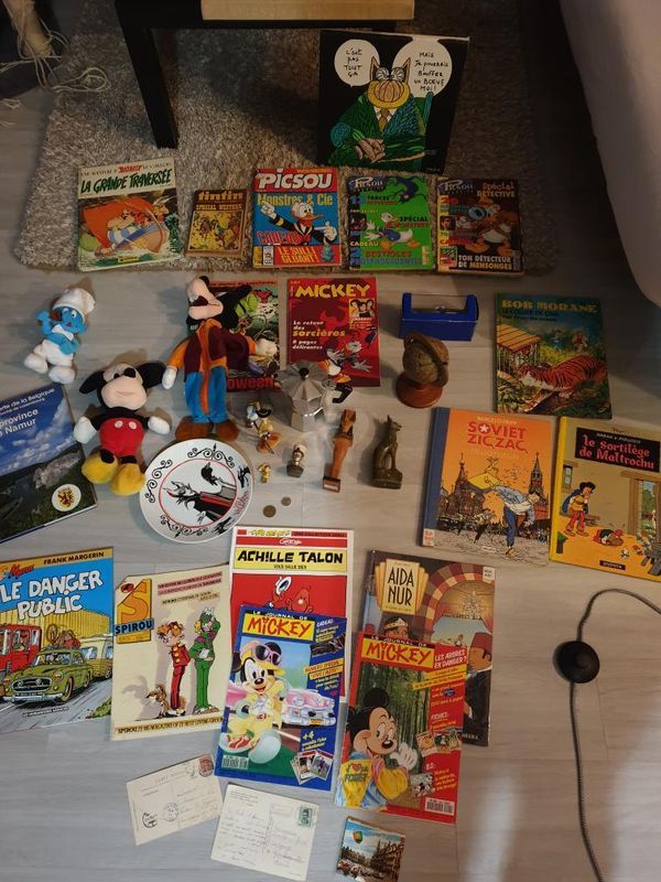 400 exposants annoncés, de très nombreuses places étaient vides ils devaient être à peine une centaine. De plus dans un quartier pas top donc peu de trouvailles, j'ai quand même sorti un Gaston T6 dos rond en EO dommage qu'il ait pris un pète sur les tranches du haut, sinon il était très beau ! Et un joli distributeur de cacahuètes de bistro. Au salon toutes collection, j'ai déniché quelques belles CPA, quelques fèves personnalisées et quelques porte-clés dont un beau porte clés Bourbon pour le cirque AMAR.