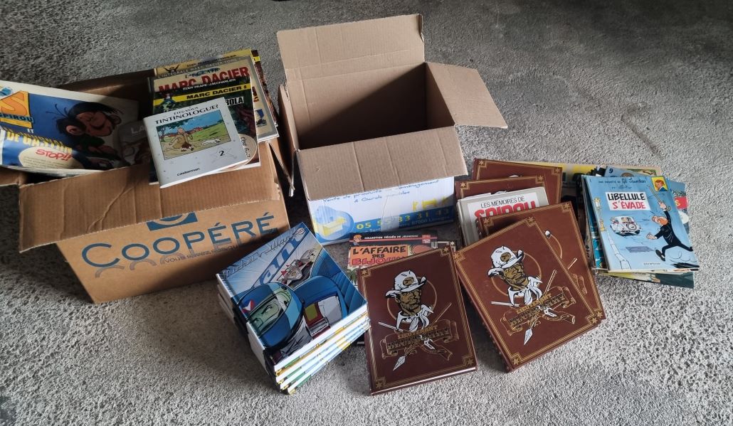 denisc a écrit:Un ami notaire m'appelle en urgence à 16h30 pour venir voir les BDs qui trainent dans une maison quasi à l'abandon, le monsieur décédé avait pas mal de BDs et surtout tous les journaux spirou des numéros 300 à aujourd'hui. Rangé par ordre chronologique la maison en bordel mais toutes les BDs étaient nickels et bien rangées. J'ai pris les trucs qui m'intéressaient, il y avait des michel vaillant, tous les buck danny, d'autres Rombaldi Alix, Lucky luke, "les histoires de l'oncle paul" tomes 1 à 5 en EO, des petits hommes, des johann..., j'ai laissé le reste au commissaire priseur. L'héritier voulait tout jeter à la base![]()