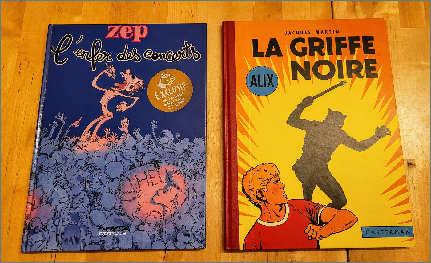 Quelques BD dont 3 dos ronds en BE, un ancien dossier de presse Angoûlème illustré par Bilal, quelques invit, deux livres 1 Doisneau et 1 Adget, un magnifique petit train d'Interlude complet (ça c'est pour les "vieux"), les jeunes connaissent pas !