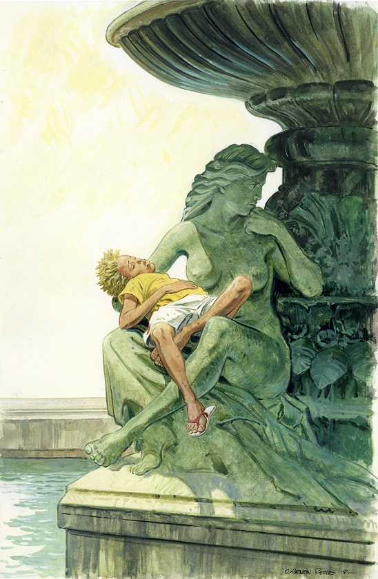 J'attend le tome 4 avec impatience et je vous invite à aller voir l'exposition à la galerie Glénat qui se termine le 10 mai. Corentin Rouge est déjà un grand. Il manipule l'aquarelle et la gouache comme très peu savent le faire. Ses crayonnés et ses encrages sont plein de vie. Les expressions de ses personnages sont incroyables. Et il va même s'amuser à utiliser de la trame. On sent qu'il se fait plaisir et c'est drôlement bien réussi et habité.