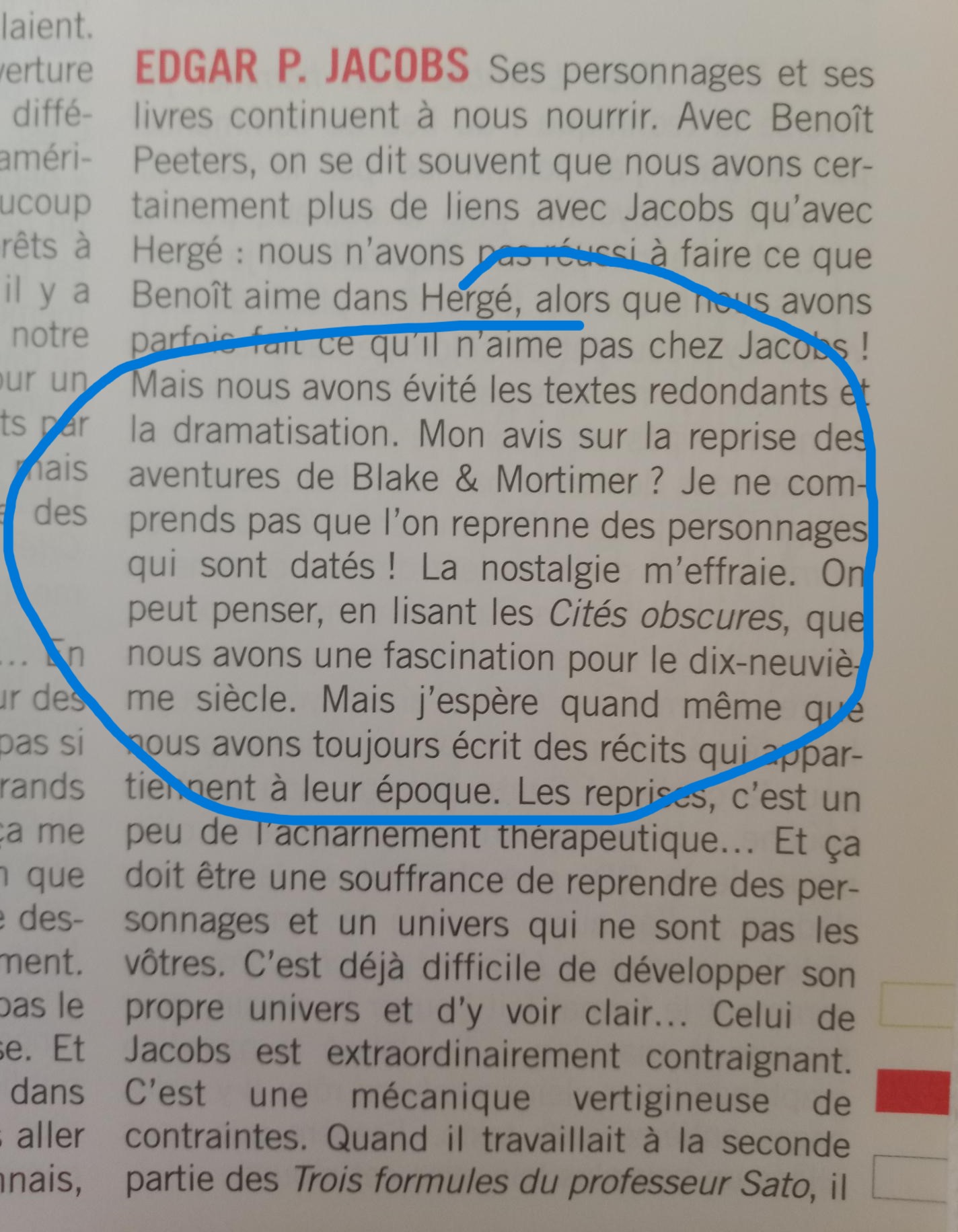 ZanZan a écrit:Parlant de ce 3e tome, il est un peu plus lent et explicatif et me semble un peu plus dans la veine de ce que fera Jacobs par la suite. Comme si son style s'était affirmé lors de sa création.