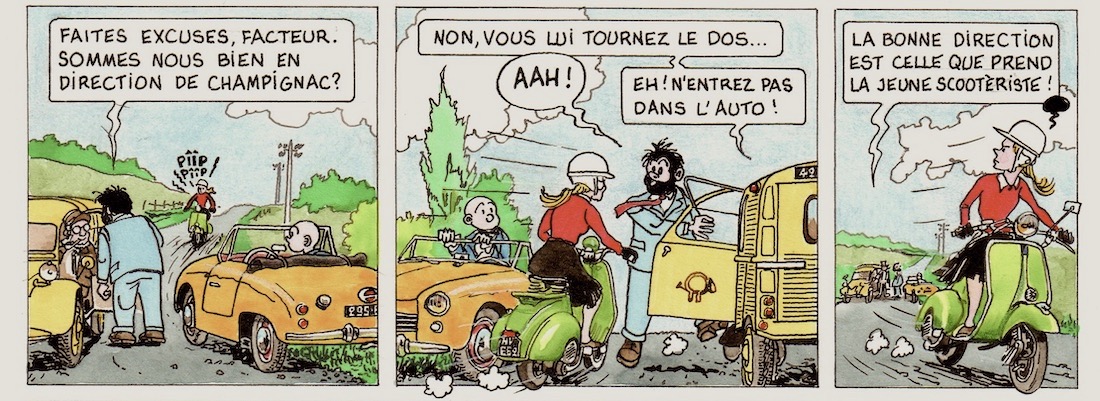 et puis l'échappement du vespa il est de l'autre coté, c'est pour ça qu'on ne le voit pas.
