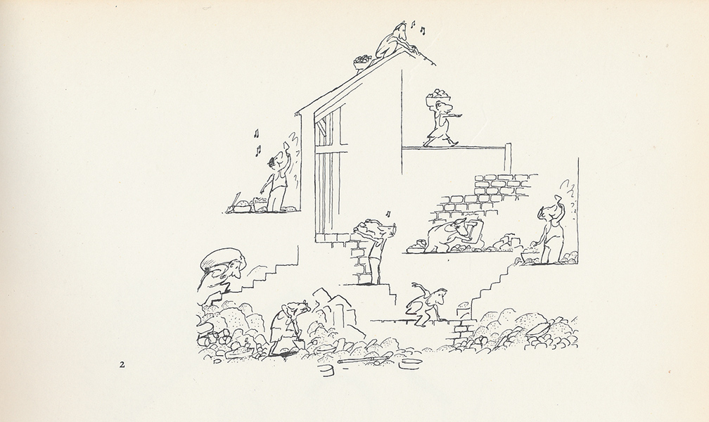 premier bande : un important groupe d'ouvrier construit une grande piscine de luxe dans la joie et la bonne humeur, ça sifflote ça rigole en bossant, ça boit un coup...![]()