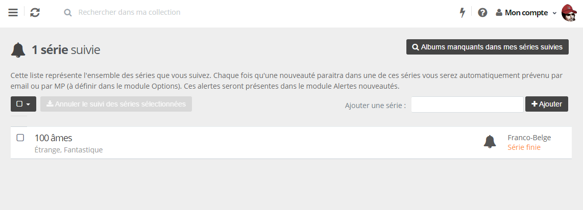 Dans la partie série je consulte la liste des séries et je constate que certaines séries sont notées suivies mais n'apparaissent pas ensuite dans la liste des séries suivies cf. seconde capture.
