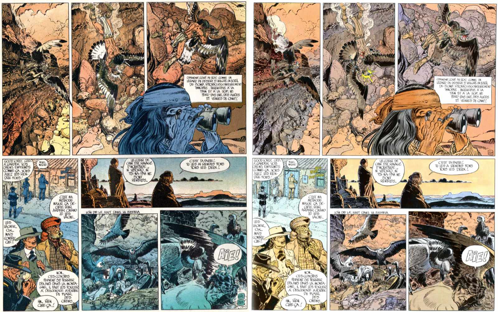 Il envisage même la mort du héros, ce qui n’empêcherait pas de lui faire vivre de nouvelles aventures à condition qu’elles soient confiées à d’autres dessinateurs. À la veille du passage à l’an 2000, alors qu’il vient de franchir le cap de la soixantaine, il reste à Jean Giraud deux albums à publier, OK Corral et Dust, pour boucler le cycle de Mister Blueberry. « Aurai-je la force de dessiner tout ça ? Ça représente au moins autant d’albums que ce qui a déjà été fait, et je ne me vois pas recommencer une carrière dans la BD de genre. Avant de m’arrêter, j’aimerais dessiner le dernier Blueberry, c’est-à-dire clore la série avec sa mort. Ce qui n’interdirait pas d’autres albums, situés plus tôt dans le temps. Mais là, je ne proposerai qu’un canevas sans être forcément le dessinateur. »