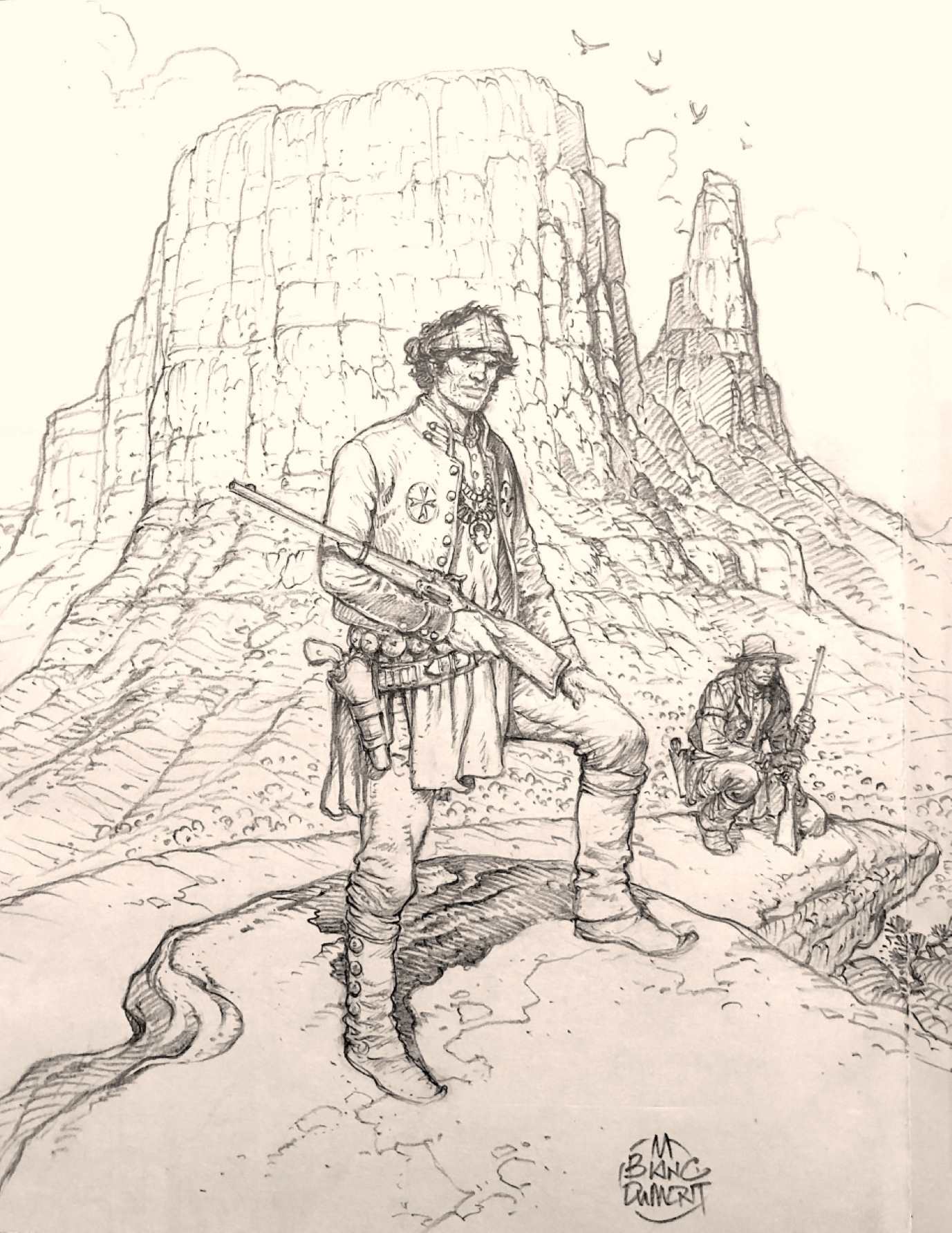 pale rider a écrit:le 25 juin sur Facebook Michel Blanc-Dumont a publié ce dessin hommage à la couverture de Nez Cassé et a donné des précisions : Ce dernier volume de la Jeunesse de Blueberry sortira début 2025 et complété d'une quinzaine de page !