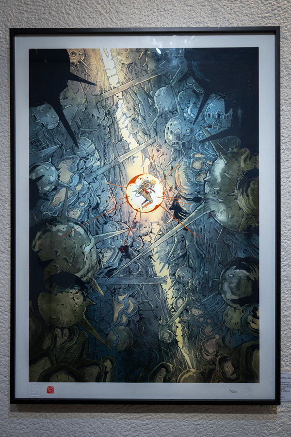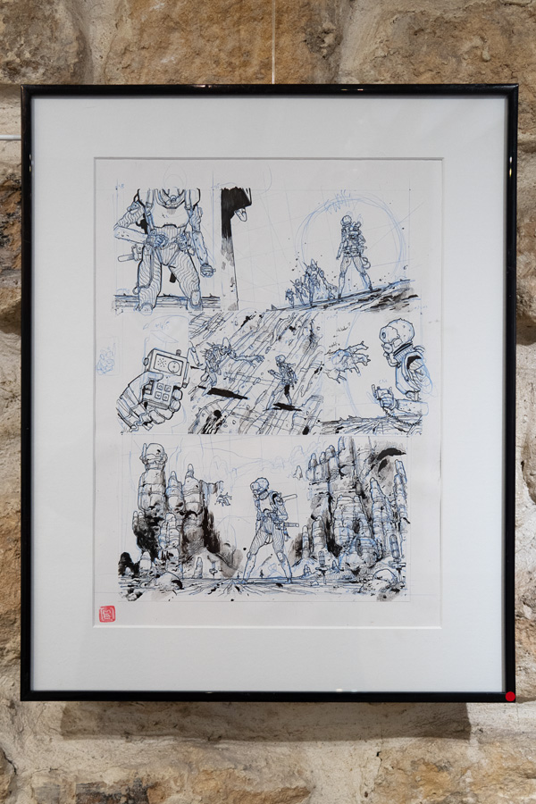 - qu’il a eu 5 ans pour réaliser l’album et qu’il en est plutôt satisfait, qu’il n’a pas du speeder plus que ça pour finir les couleurs avant le bouclage. Il pourrait évidemment modifier des choses sur l’album à l’heure actuelle, mais pas plus que n’importe quel auteur qui regarderait ses œuvres de manière rétrospectives avec un autre regard qu’à l’époque.