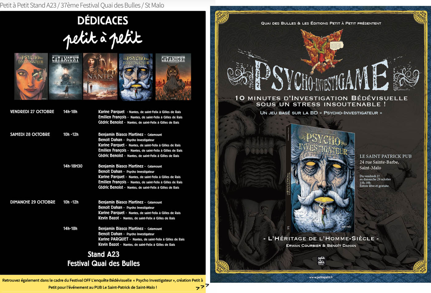 Personnellement j'y serai avec mes albums BDs "Psycho Investigateur" et le livre 4-8 ans "L'Ogre Georges & les Bonbons Roses" et je les dédicacerai sur place, et j'aurai aussi des dessins et planches originales en vente, pour tous les budgets