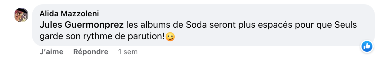 Diddu a écrit:Le truc, c'est que Seuls est déjà une série qui s'éternise, alors si Gazzotti repart sur Soda désormais, on n'est pas prêts de voir le dénouement de Seuls (si tant est qu'un tel dénouement existe)